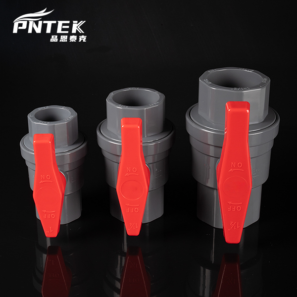 PVC Two Pieces Ball Valve with Red Plastic Handle with Valve Seat JIS Socket